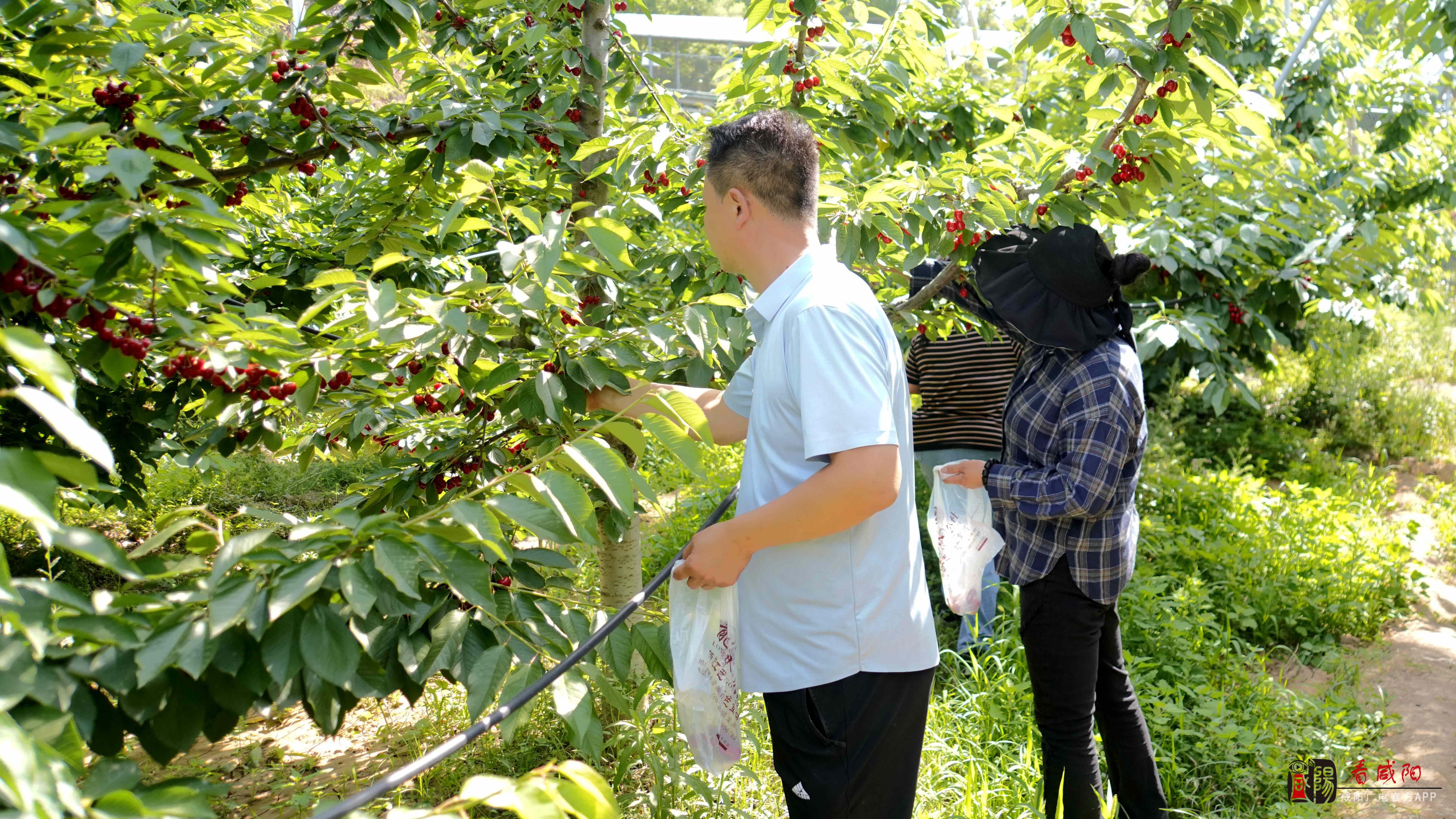 《看咸阳》讯:眼下,正是樱桃上市的季节。5月17日,走进泾阳龙泉山庄樱桃园,红彤彤的樱桃犹如晶莹的红玛瑙,吸引周边游客前来采摘。