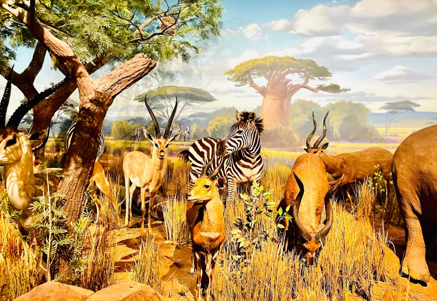 自然展馆通过37亿年的标本与历史对话、与自然和科学对话,以“地球演化”“生物进化”“生态文明”为三大主线,展现自然发展史,讲述人与自然的故事。主要展示陈列了5000余件标本模型,有有鱼龙、翼龙、马门溪龙、似银杏、新芦木等珍贵的远古化石,有秦岭大熊猫、金丝猴、羚牛、朱鹮、珙桐 、独叶草等珍稀动植物标本,呈现出一幅绚丽多姿的地球生命物种演化图。