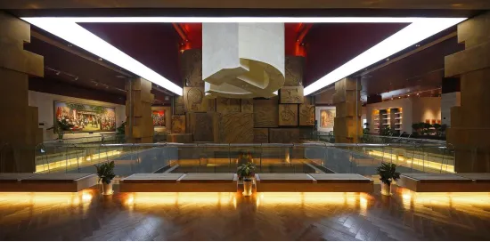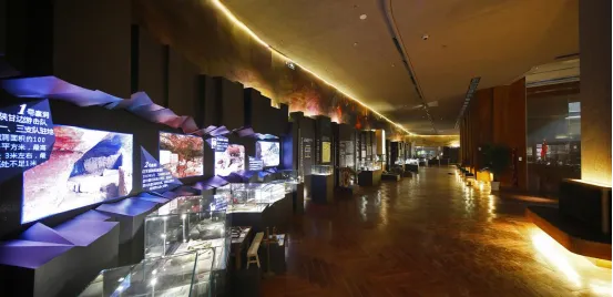 陕甘边革命根据照金纪念馆分为上下两层,一楼为序厅、主展厅;二楼为副展厅和多功能区。序厅顶端以党徽、党旗为背景,以铸铜雕塑墙为依托,并配以声光电等现代科技展示手段,突出了“纪念、记忆”的革命主题,给人以视觉上的震撼和冲击力。