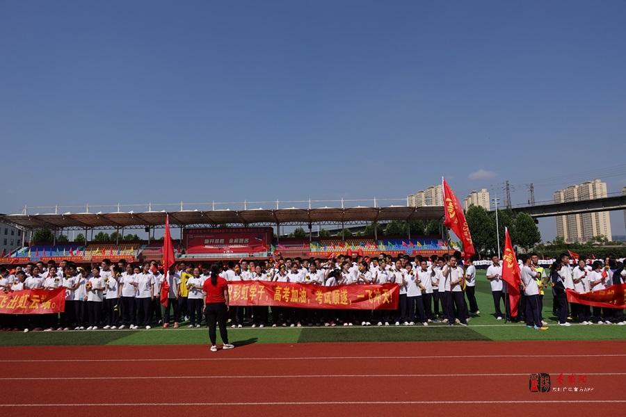考生们高擎“旗开得胜”的大旗,高喊口号,挥舞班旗,以铮铮誓言表达决心,以奋进的步伐彰显壮志,愿所有考生以梦为马,不负韶华;拼搏三年,圆梦今朝。