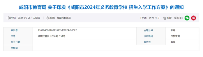 现将《咸阳市2024年义务教育学校招生入学工作方案》印发你们,请严格遵照执行。