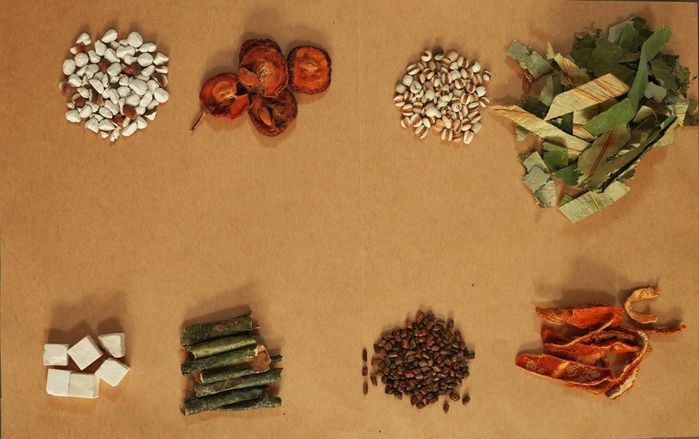 配方组成:茯苓、山楂、荷叶、陈皮、淡竹叶、薏苡仁、决明子、芡实等。
