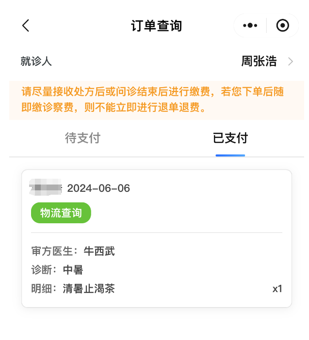 4.支付费用(仅自费),支付前请核对信息,药方一经售出概不退换;