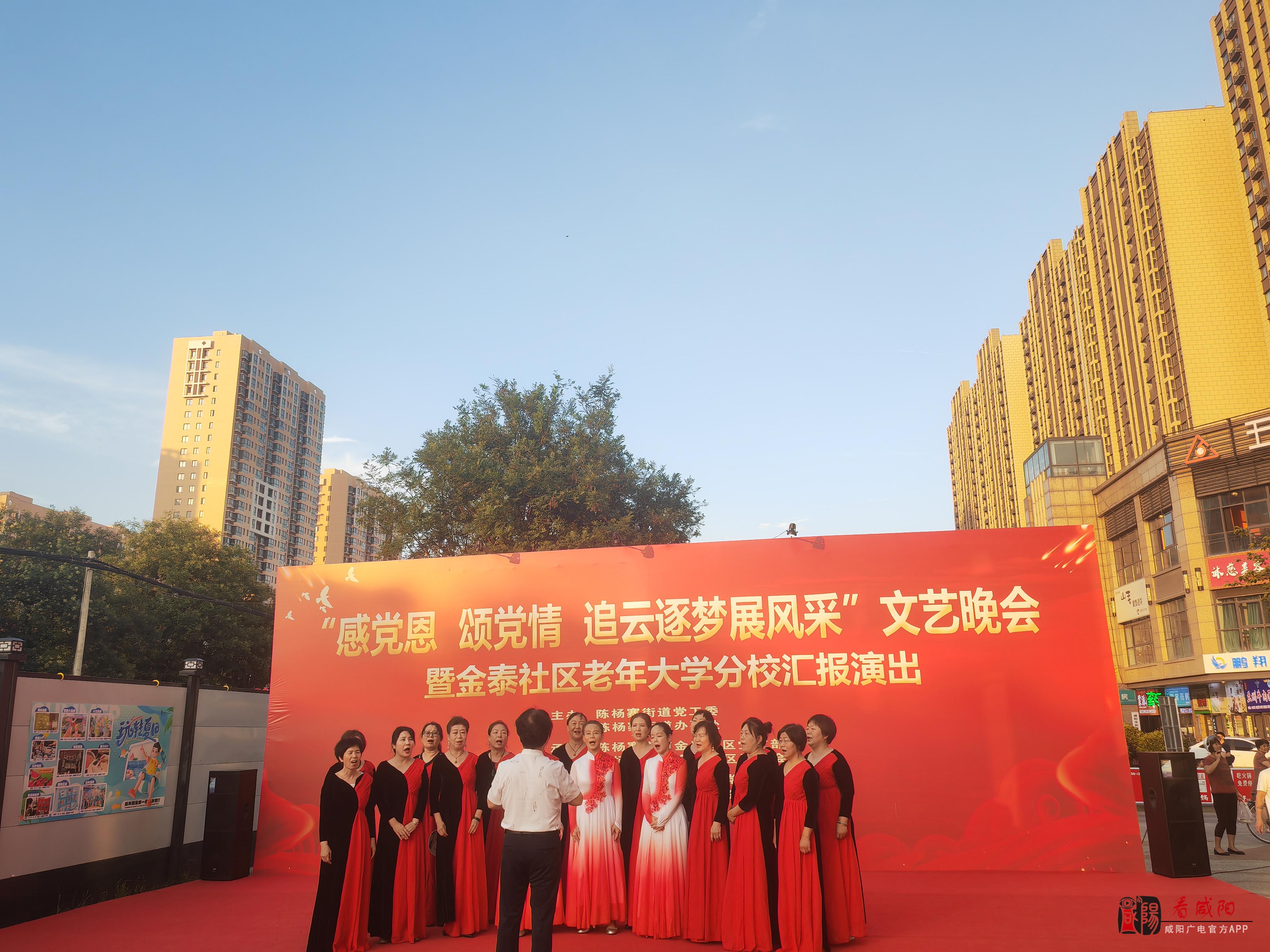 《看咸阳》讯:近日,金泰社区“感党恩 颂党情 追云逐梦展风采”七一文艺晚会暨金泰社区老年大学分校举行汇报演出,庆祝中国共产党成立103周年。