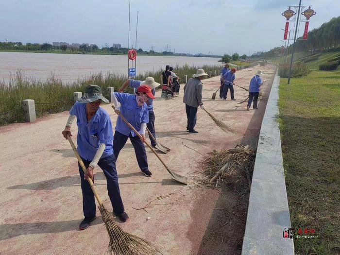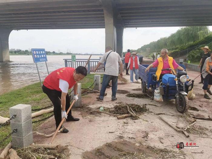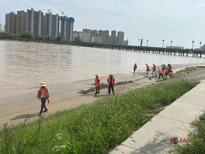 本次清淤作业,咸阳湖管理处共组织工作人员120余人,出动冲洗水车5辆,三轮车5辆,大家各司其职,分工明确,采用“铲、推、冲、扫、洗”等同步作业模式,对亲水平台堵塞的杂物进行清除,对树木进行搬运,用铁锹、铲子对桥面、道路两旁公共节点的泥沙进行清理。 并且还在隐患点拉设警戒线、设置警示牌,给过往群众进行安全引导,提供帮助。
