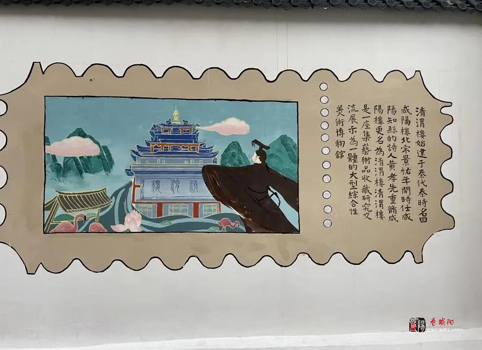 前期,志愿服务队经过几个月的筹备,最后选址仪凤东街中段的一面墙体作为墙绘创作地点。在绘制内容上,志愿者们发挥专业优势,结合咸阳地标性建筑、“关中八景”等主题,采用电脑绘图,经过反复修改调整,最终设计出了带有咸阳地域特色的“清渭楼”“咸阳古渡”等绘制内容。