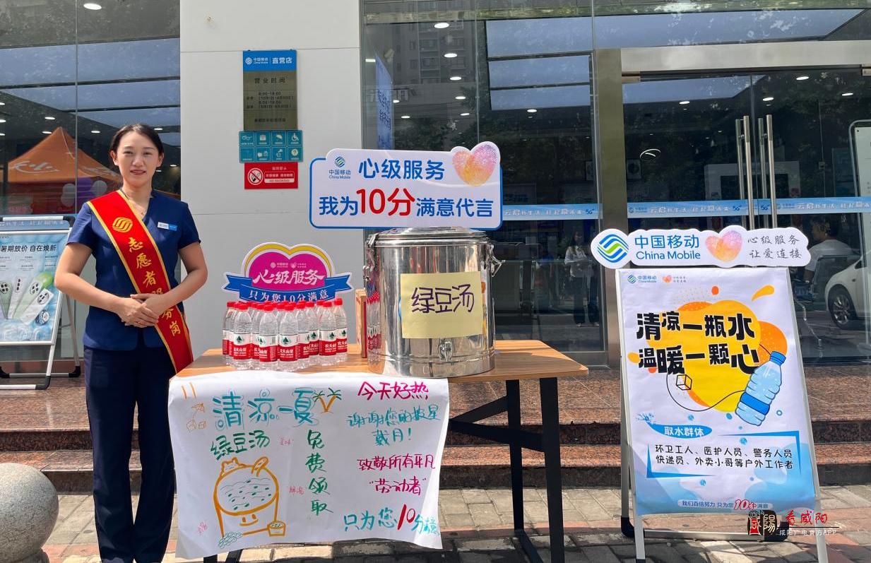《看咸阳》讯:随着炎炎夏日的到来,陕西移动咸阳分公司在人民路彩虹营业厅举办了一场名为“心级服务 夏日送清凉”的温馨活动。此次活动旨在向在户外辛勤工作的一线工作者们表达深切的关怀与感谢,同时体现了企业强烈的社会责任感。