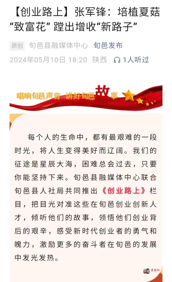 《看咸阳》讯:近年来,旬邑县坚持把弘扬创业典型作为撬动全县创业就业工作高质量发展的有力杠杆,全方位、多形式开展创业创新成果宣传推介,使一大批创业创新项目和创业典型人物事迹先后被广大群众所熟知,在全县营造了良好的创业氛围,为县域经济社会发展注入了强劲动能。
