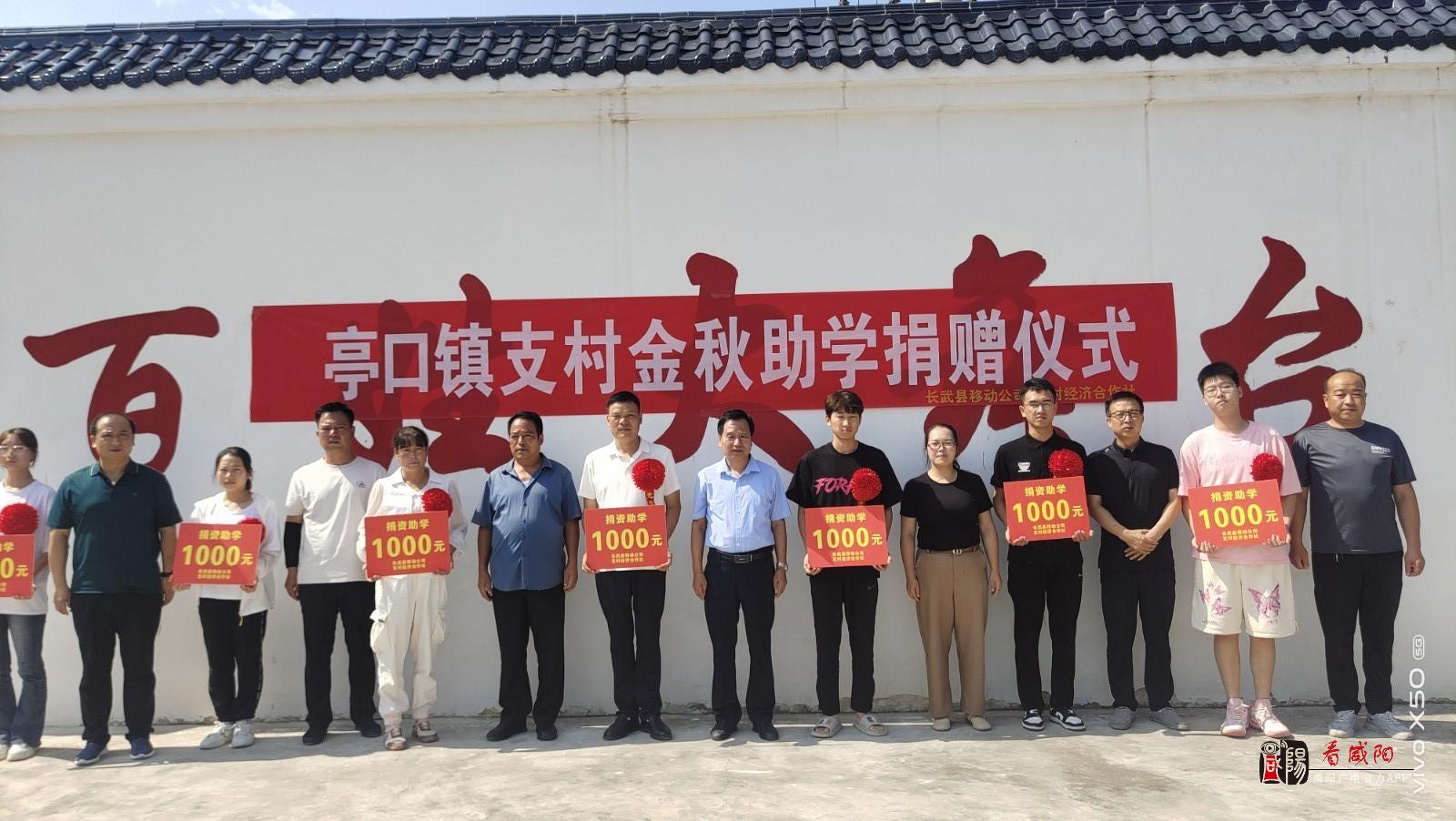《看咸阳》讯:8月20日,陕西移动长武分公司与亭口镇支村经济合作社联合举办了“金秋助学”大学新生资助仪式,向7名收到大学录取通知书的新生发放了总计7000元的爱心助学金,鼓励孩子们在新的学习征程上保持积极进取的态度,激发更多青年学子追求卓越。