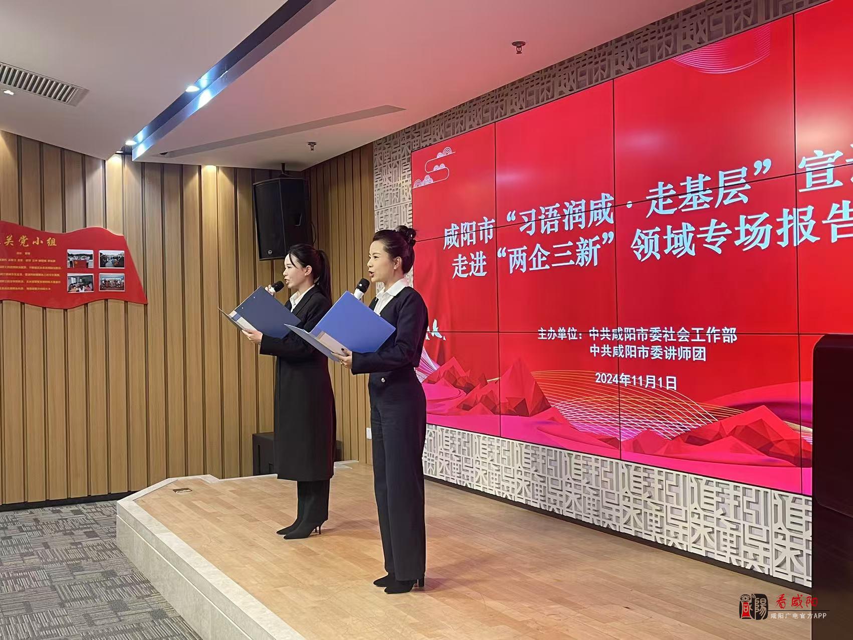《看咸阳》讯:11月1日,由中共咸阳市委社会工作部、市委讲师团主办的咸阳市“习语润咸•走基层”宣讲团走进“两企三新”领域专场报告会举行。
