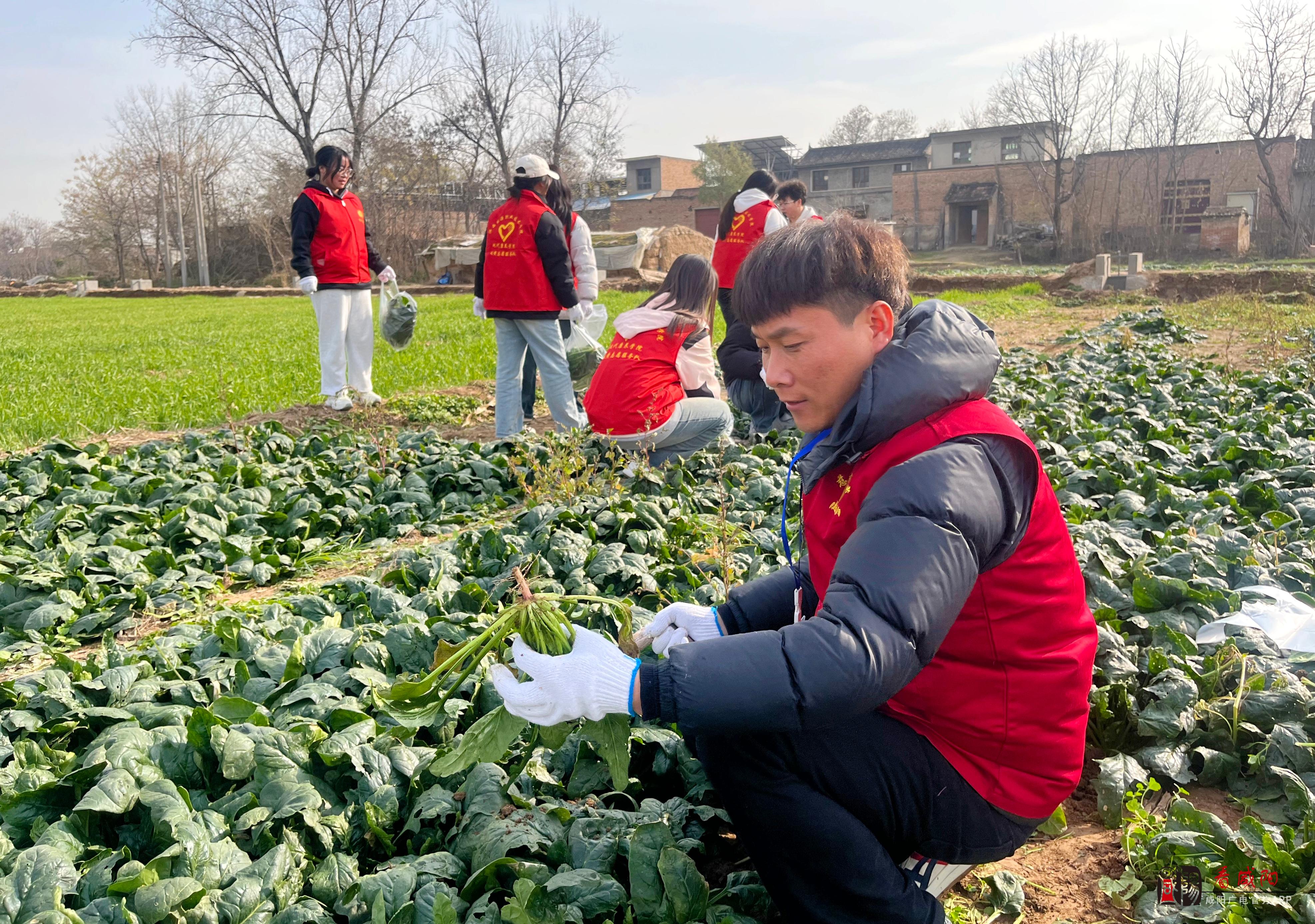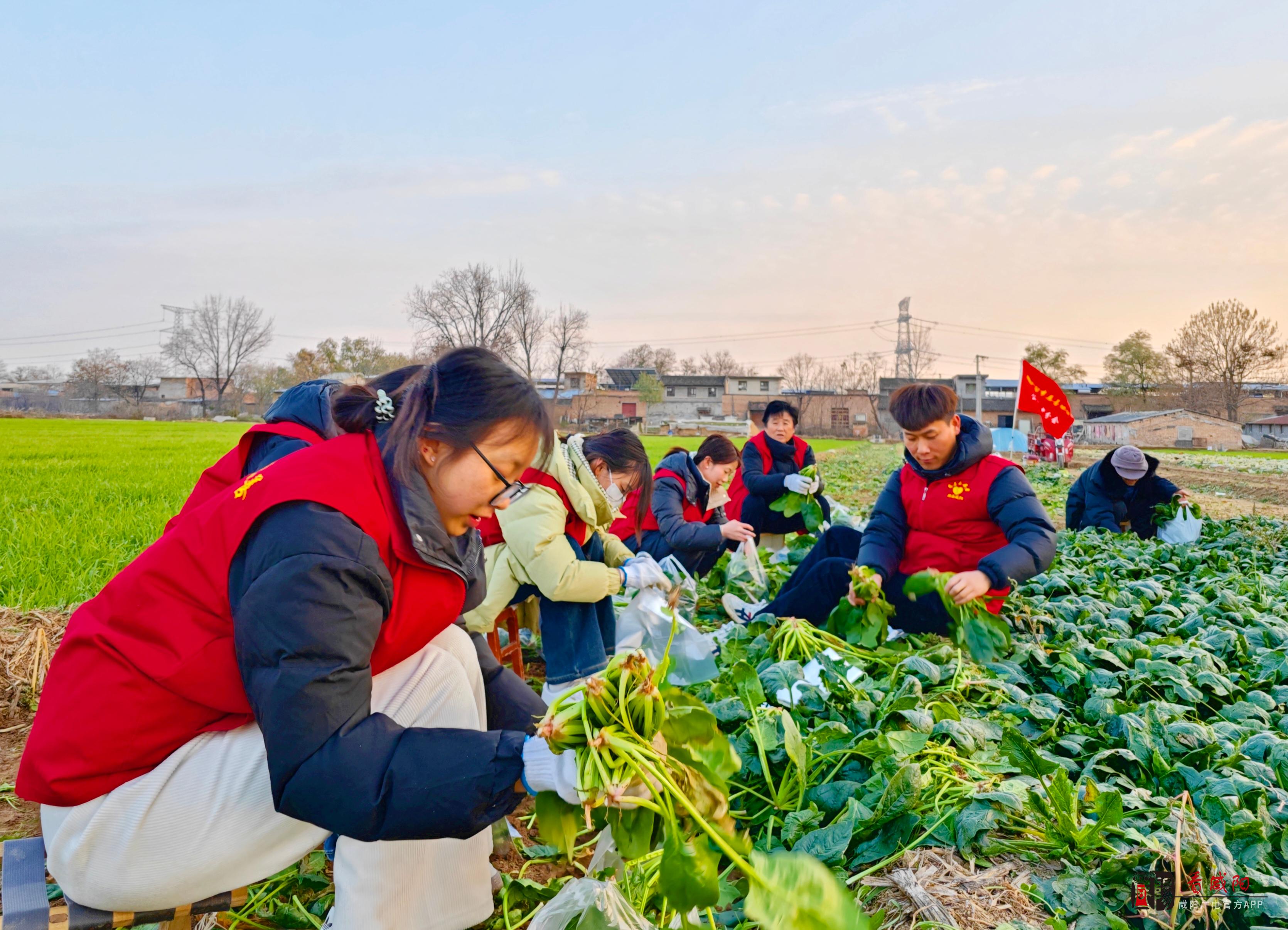 《看咸阳》讯:12月6日至7日,咸阳市慈善协会公益志愿者分会50余名志愿者走进泾阳县中张镇新庄村,开展爱心助农活动,帮助当地菜农采收菠菜,并认购4吨菠菜,免费发放给渭城区渭阳街道秦王府小区、秦都区渭滨街道704小区、西兰路街道沈家小区的居民,为寒冬增添了一抹暖色。