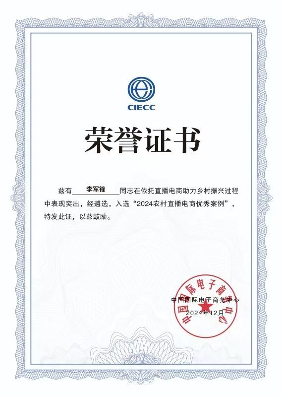 《看咸阳》讯:近日,商务部公布了2024年农村直播电商优秀案例名单,由咸阳彬州市电商办推荐的回乡创业新农人李军锋入选全国2024农村直播电商优秀案例,成为彬州市首个入选农村直播电商优秀案例征集活动的个人案例。